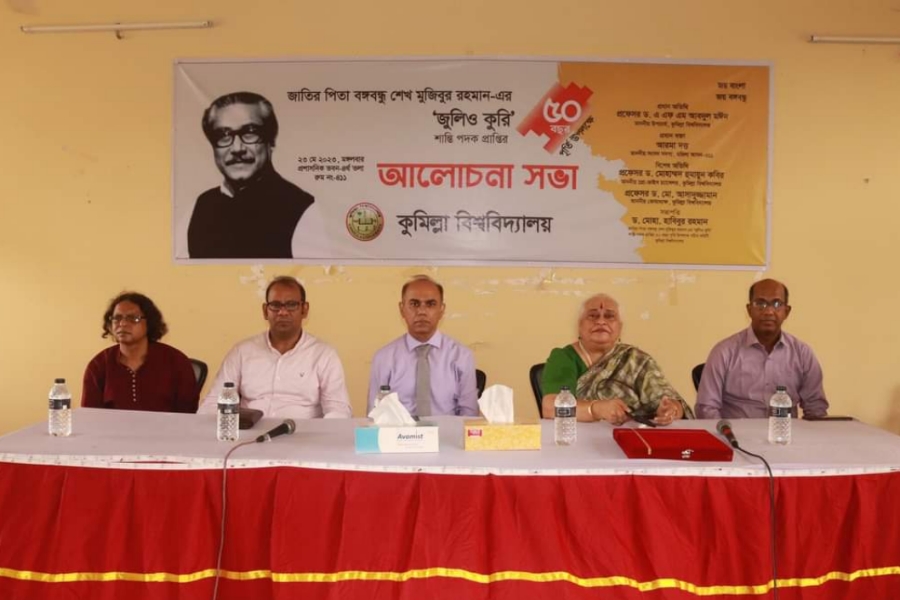 বঙ্গবন্ধু শান্তি প্রতিষ্ঠার জন্য যে দর্শন বুকে ধারণ করতেন তা শুধু বাংলাদেশের জন্য নয়, সারা বিশ্বের শান্তি প্রতিষ্ঠার জন্য ধারণ করেছেন। বঙ্গবন্ধু বলেছিলেন, সারা বিশ্ব দুই ভাগে বিভক্ত, একভাগে শোষক আর একভাগে শোষিত এবং তিনি ছিলেন শোষিতের পক্ষে। আজ মঙ্গলবার (২৩ মে) সকাল ১১টা বঙ্গবন্ধুর ‘জুলিও কুরি’ শান্তি পদক প্রাপ্তির ৫০ বছর পূর্তি উপলক্ষে এক আলোচনা সভায় এসব কথা বলেন কুমিল্লা বিশ্ববিদ্যালয়ের মাননীয় উপাচার্য প্রফেসর ড. এ এফ এম আবদুল মঈন।
