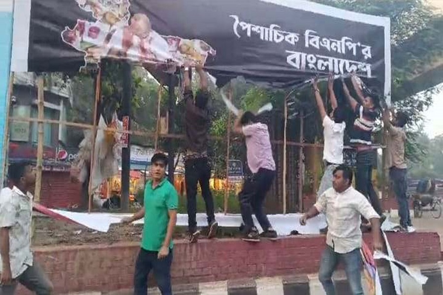 শাহবাগ থেকে বিএনপি বিরোধী বিলবোর্ড অপসারণ করল ছাত্রদল